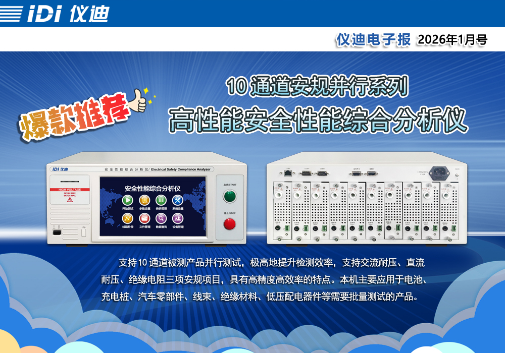 安规测试作为基础的电气安全测量项目,在各类电器生产行业得到了普遍应用,仪迪电子安规产品线具备丰富的产品,适配各类电器生产、老化、抽样、认证、质检等检测环节,广泛应用于家用电器,商用电器,医疗器械,灯具,影音信息设备等行业,以及相关科研院所......